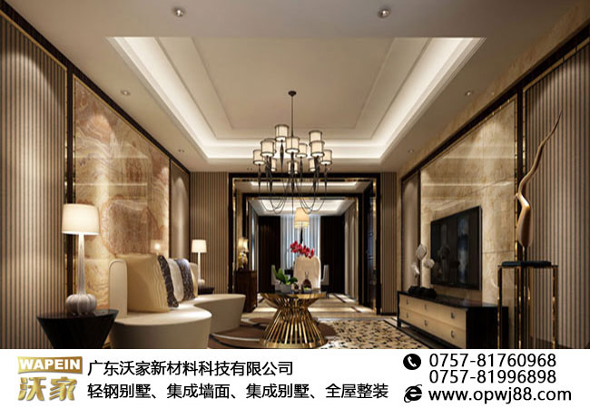 广东沃家新材料轻钢别墅,自然生态,绿色环保:广东沃家新材料轻钢别墅利用新研发高分子纳米技术,经过模压,有机结合,物理成型,热转印等严格复合工艺,原生态原料和现代创新科技结合。依据客户需要,各种形状、可以任意组拼,能实现各种平面,立体,浮雕,软包等各种使用效果,中式,欧派,古典,田园风格,使所装房屋有价值空间,同时还有很好的立体效果。